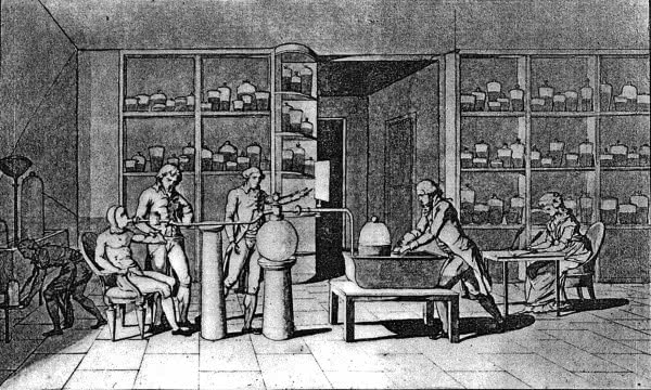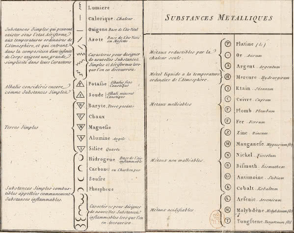 na ilustracji z podręcznika nomenklatury chemicznej („Méthode de Nomenclatura Chimique”, 1787)