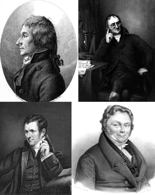 U góry od lewej: Joseph Proust i John Dalton,