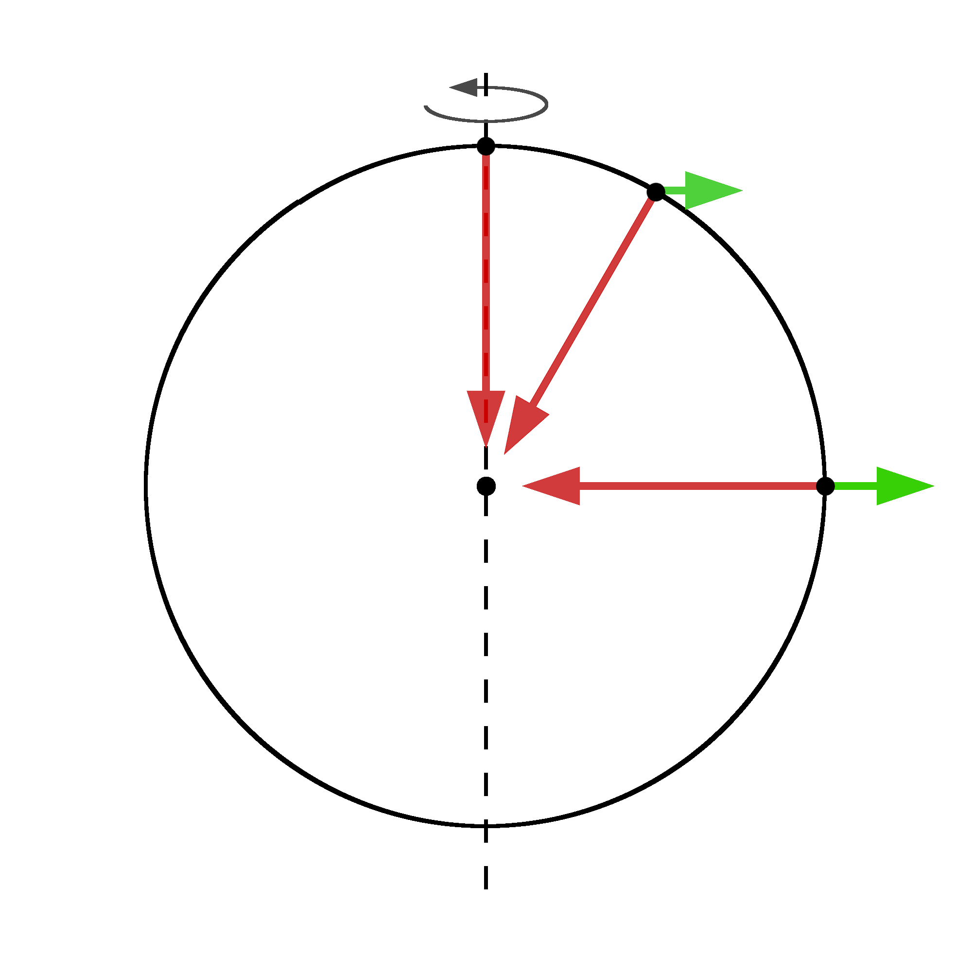 Ziemia, a wraz z nią atmosfera, obraca się z zachodu na wschód. Każde ciało, które z punktu widzenia nieruchomego obserwatora na Ziemi porusza się pionowo w górę, w układzie odniesienia związanym ze środkiem naszej planety ma składową prędkości skierowaną na wschód.