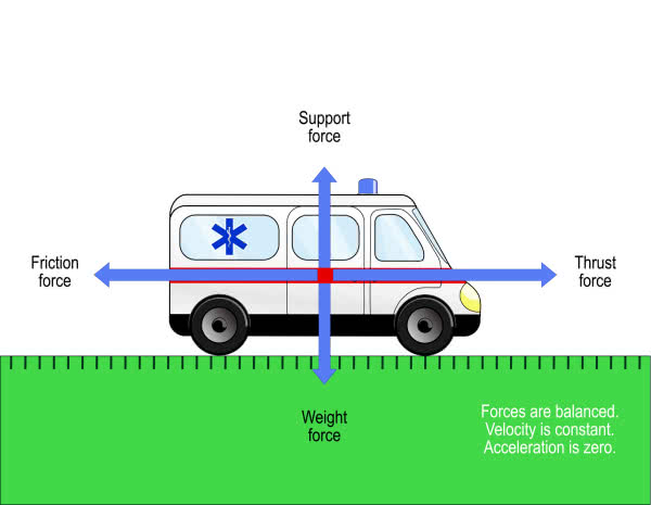 Pierwsza zasada dynamiki Newtona wyjaśnia zachowanie ciał na które nie działa niezrównoważona siła lub w ogóle nie działają żadne siły, przy czym to ostatnie w odniesieniu do rzeczywistych obiektów fizycznych jest dużym uproszczeniem. Należy ją rozumieć w ten sposób, że jeśli wypadkowa siła działająca na dane ciało wynosi zero, to jego prędkość, rozumiana jako wielkość wektorowa, nie ulegnie zmianie. Jeśli do tej pory spoczywało, to nadal będzie spoczywać. Jeśli poruszało się ze stałą prędkością, to będzie kontynuowało ruch, nie zmieniając ani jej wartości, ani kierunku.