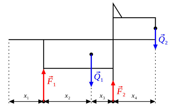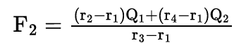r1F1 + r3F2 = r2Q1 + r4Q2