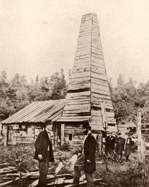 1859 Edwin Drake przestudiował sposób, w jaki właściciele studni wiercili w poszukiwaniu soli i zdecydował, że może wykonać podobną pracę, wiercąc w poszukiwaniu ropy naftowej w Titusville. Współpracował z Pennsylvania Rock Oil Company, która zbierała ropę naftową wyciekającą z ziemi (7). Drake zdecydował, że wiercenie studni w celu dotarcia do ropy będzie bardziej opłacalnym przedsięwzięciem niż zbieranie ropy wyciekającej na powierzchnię. Drake użył rury wiertniczej, aby dotrzeć do złoża ropy, ale później nie udało mu się opatentować swojej metody wiercenia. Mimo to Drake natrafił na ropę w sierpniu 1859 r., a osiągnięcie to jest uważane za pierwsze udane komercyjne wiercenie w poszukiwaniu ropy.