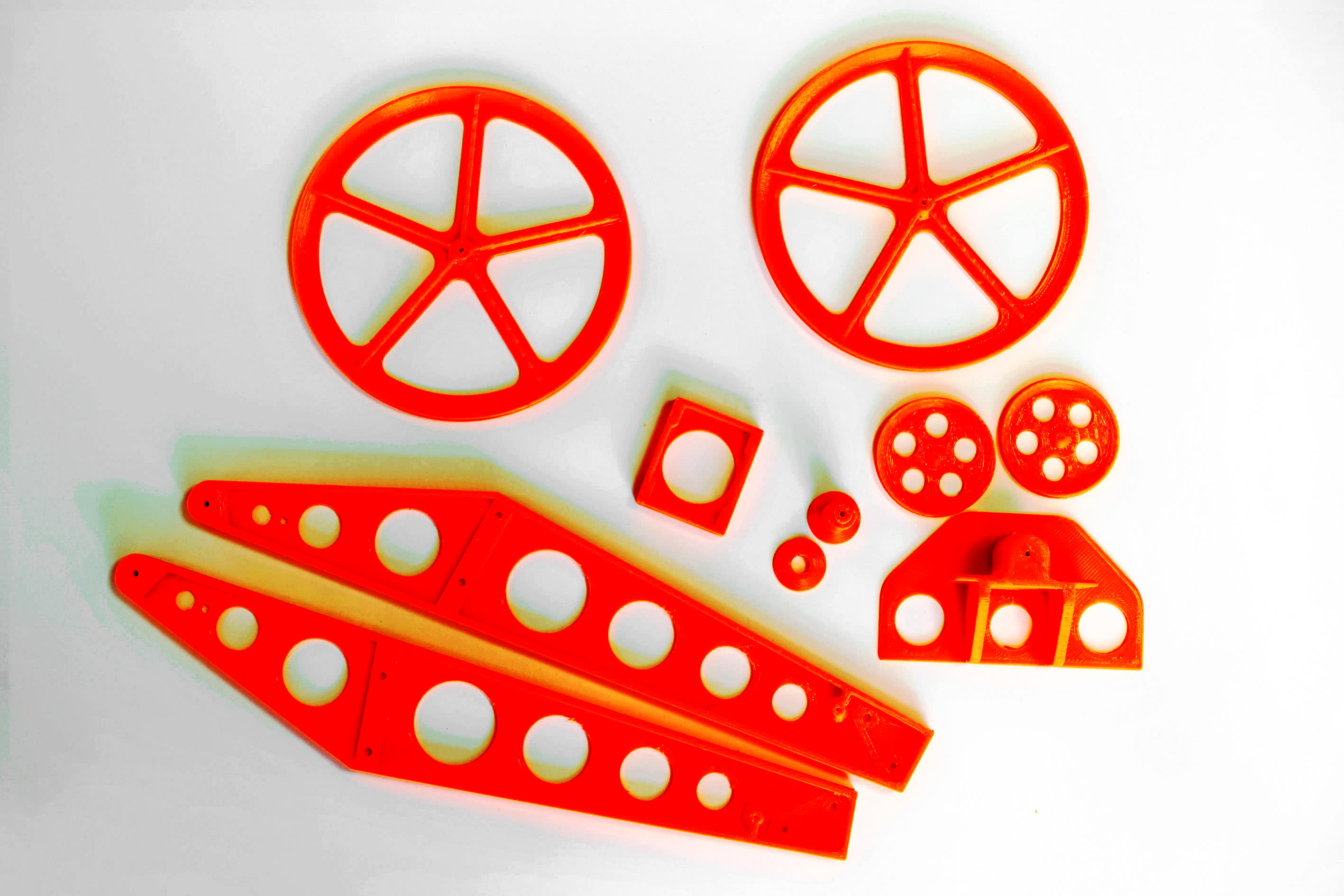 Budowę modelu rozpoczynamy od wydrukowania głównych części. Do druku można użyć dowolnego filamentu, np. PLA lub PETG, projekt przygotowany jest pod dyszę o średnicy 0,4 mm, trzeba też zwrócić uwagę na precyzyjne wypoziomowanie stołu i grubość warstw, dla modeli, które drukowałem, grubość pierwszej warstwy była ustawiona na 0,3 mm, a pozostałe warstwy na 0,2 mm.