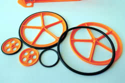 Tak jak w prawdziwym dragsterze, żeby zapewnić wymaganą przyczepność kół, potrzebne są dobre opony, które w naszym modelu wykonane są z gumowych uszczelek (oringów), w przypadku przednich kół są to uszczelki śrubunku 1 cal, natomiast opony tylnych kół to uszczelki filtra wody. Takie uszczelki są dostępne w sklepach hydraulicznych lub marketach budowlanych na stoiskach z armaturą hydrauliczną.