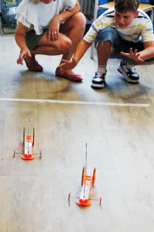 Nasz model, choć nie będzie demonem prędkości ani przyspieszenia, może sprawić wiele frajdy, szczególnie emocjonujące będą wyścigi modeli przeprowadzone na wzór prawdziwych zawodów, można je przeprowadzić na szkolnym korytarzu czy w sali gimnastycznej. W moim przypadku wyścigi odbywały się w modelarni na dystansie ośmiu metrów. Model można też wykorzystać jako pomoc naukową na lekcji fizyki, np. do zademonstrowania zamiany energii potencjalnej w kinetyczną czy zobrazowania ruchu jednostajnie przyśpieszonego.